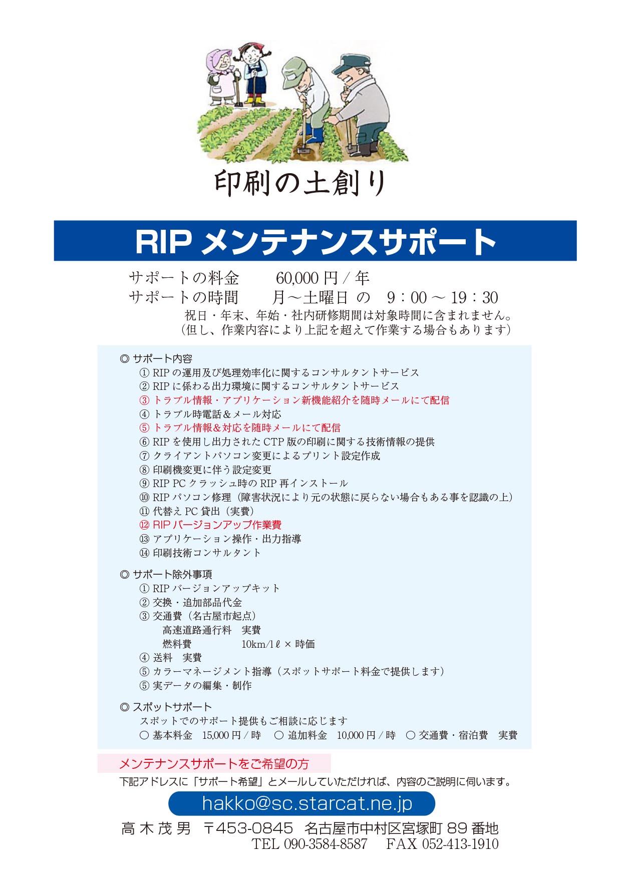 | 会名 | RIPメンテナンスサポート(RIP Maintenance support) 別名 印刷の土創り |