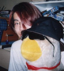 | コレも「俺2」と同じ時。友人の「真理」です。 ちなみにこの字、「まさみち」と読むんだけど、普通に読むと「まり」としか読めない。よって、俺らのうちではたまに「まり坊」とか呼ばれてます(笑) あひるです。ガーコです。帽子デス。何故グラサンなんでしょうか。 こんなステキなアヒルを見た事は無いデス。飼いたいかって?イヤに決まってるじゃないですか。だって怖いもん。 |